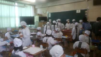 いつも1年生の給食の手伝いをしてくれている6年生、今日は学力調査を受験しています。6年生に代わって、今日は5年生が手伝いをしてくれました。5年生の皆さん、ありがとうございました! 頼もしい5年生です。
