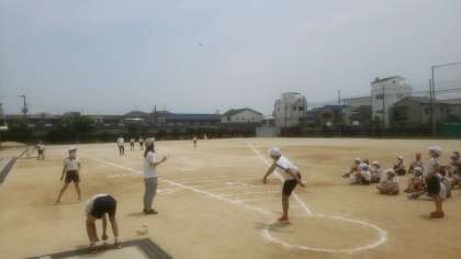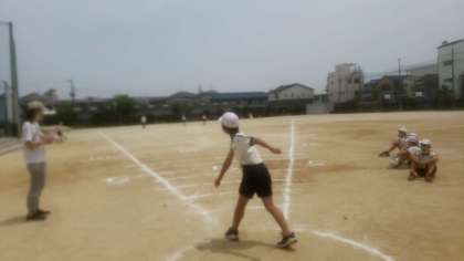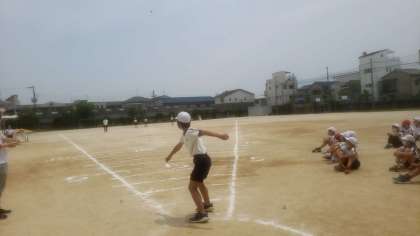 運動場ではソフトボール投げ。去年より、どれくらい記録が伸びたかな?