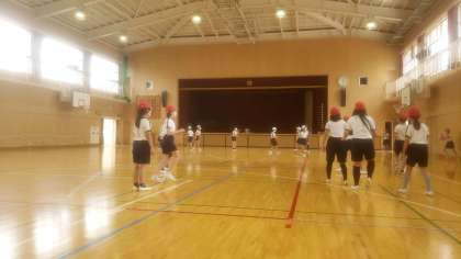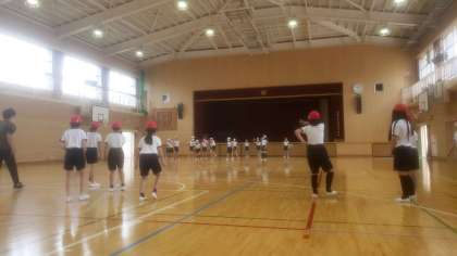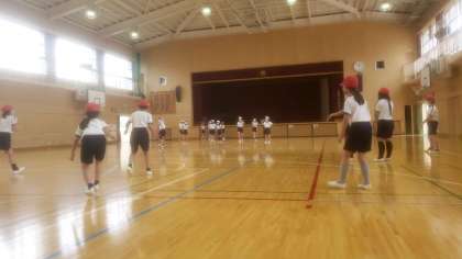 2組はスポーツテストが終わったので、ドッジボール。よく見ると、6年生の先生も一緒に参加していました♪