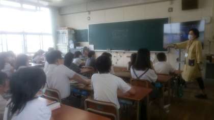 昨年行われた東京オリンピックの男子400メートルリレーの映像を見ながら、バトンパスの学習です。