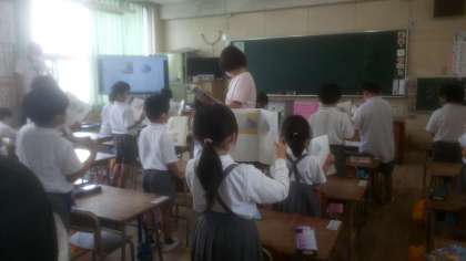 みんなで一斉読みをしています。音読の宿題の成果が出たかな?