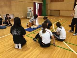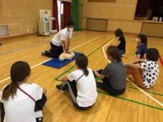 救命救急講習を受けて、実際にレサシアン人形やAEDを使って実技の練習をしました。