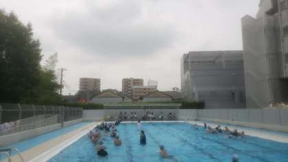本日より、今年度の水泳学習が始まりました。どんよりとした曇り空ですが、無風で湿度も高いので、子ども達は気持ちよさそうに泳いでいました。