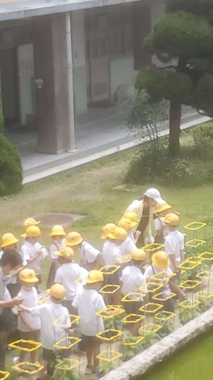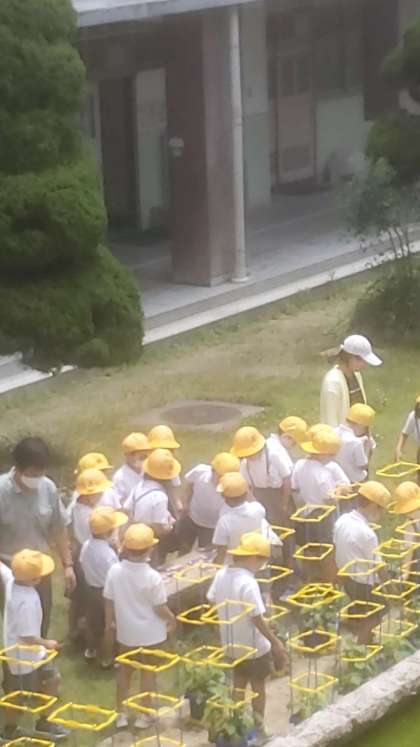 春に植えた朝顔も随分と大きくなりましたね。1年生の皆さんと同じように、確実に成長しています。