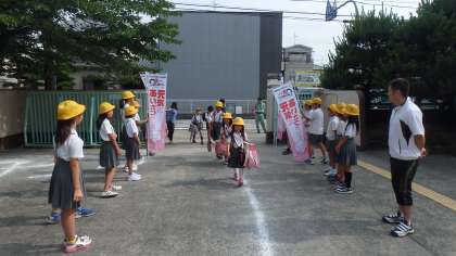 6月22日(火)、さあ、今日からプール水泳が始まりました。保護者の皆さまにはお子様の体調の観察・管理をよろしくお願いいたします。さて、5月21日(木)のHPでご紹介しました本校の『あいさつプロジェクト』。今日は大阪府から届いたのぼりを掲げて取組みました。『みんなが、あいさつのできる、学校にしよう』、頑張っています。応援ご協力よろしくお願いいたします。