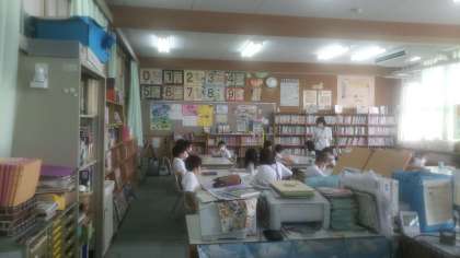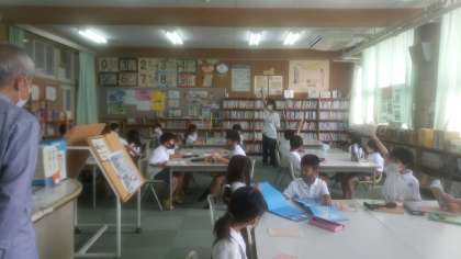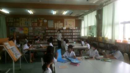 7月から連想する言葉をみんなで発表しています。イメージを膨らませた後に、読みたい本を選びました。
