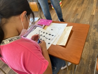 英語に親しみながら、キャラクターを作ったり、質問に答えてストラックアウトをしたりして楽しみました。