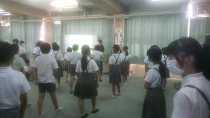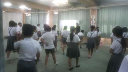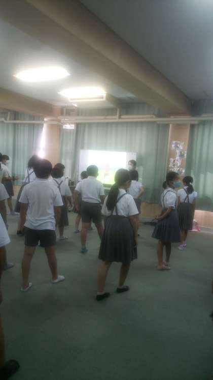 運動会で踊るダンスの動きを動画を見ながら練習していました。