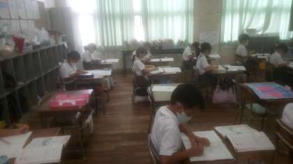 いつも、姿勢を正して学習している2組の皆さん。今日も背筋を伸ばして漢字練習に取組んでいます。