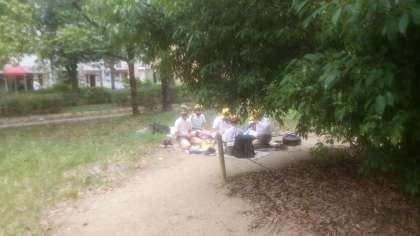 見学のあとは、近くの公園で昼食です。