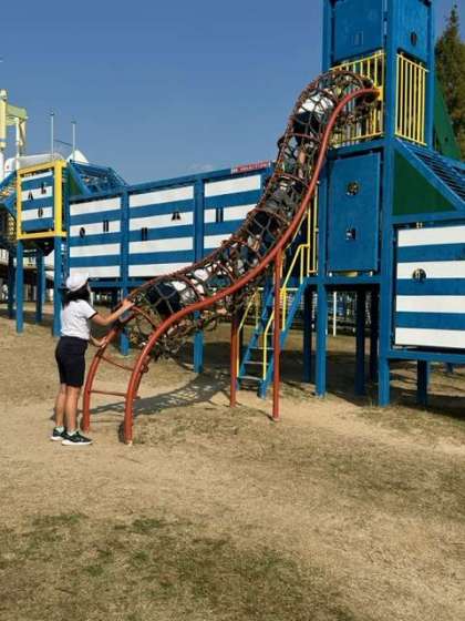 他の学校の人たちと順番を守りながら楽しく遊んでいます。