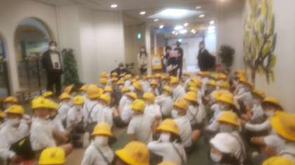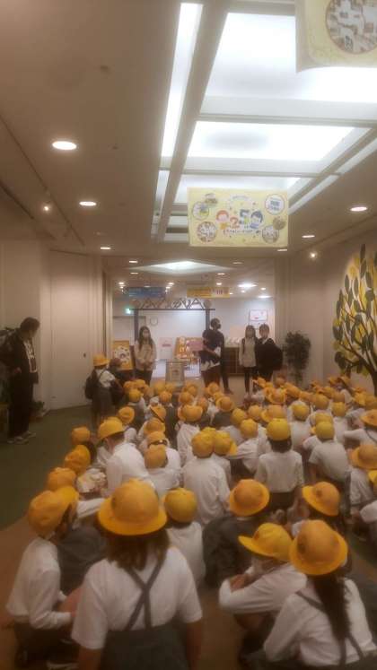 キッズプラザに到着しました。見学の時に気をつけることについてお話です。
