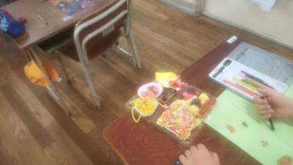 今週、水曜日から始まる作品展に向けて、最後の仕上げです。2年生は、紙粘土や毛糸などを使って「自分だけのお弁当」作りです。
