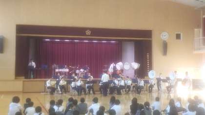 今日は午後から、芸術鑑賞会が行われました。大阪府警音楽隊の皆様に来校頂きました。5時間目は、低学年が対象です。アニメソングを中心の合奏に子ども達は大喜びでした。