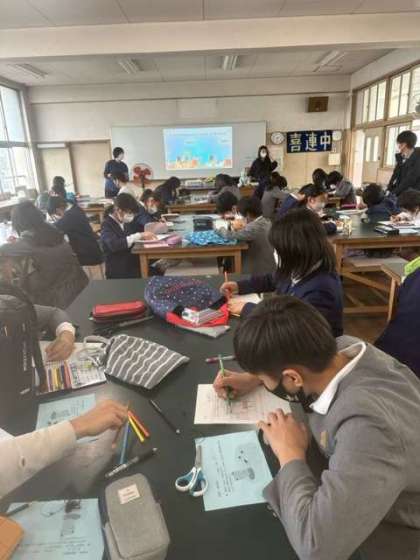 家庭科の学習で「インテリア」「カラーコーディネート」について学習しています。