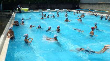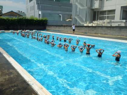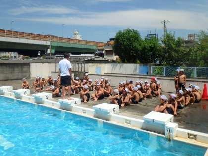 7月24日(金)、雨で二日中止になっていた、夏休み水泳指導。今日は学校のプールに、子どもたちの楽しそうな歓声がかえってきました。この夏休み水泳指導は、子どもたちに『水に親しむ機会をできるだけ増やし、その楽しさを味わわせる』ことを目標に、今年も7月いっぱい平日の午前に行っています。でもやっぱり子どもたちの一番の楽しみは、最後の自由水泳timeのようです。