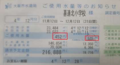 1学期に社会科の学習で「水」について学習してきた4年生の皆さんが獲得した知識をもとにして、校内のみんなに節水を呼びかける活動(ポスターやステッカーの掲示、休憩時間の点検や啓発運動、各クラスでのプレゼン等)に取組みました。結果、水道使用量がなんと前年度の同月より、100立方メートル近く減少しています。4年生の皆さん、ありがとうございました。自分達の身近な社会で起こっている様々な課題に対して、自分たちなりに解決方法を考え、それを実践していくことは、大切な社会科の目標の一つです。