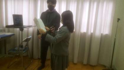 賞状伝達式の後、第2学期終業式を行いました。まずは、児童代表の皆さんから作文の発表がありました。2学期に頑張ったことや3学期のめあてなどを発表しました。続いて、校長先生と生活指導担当の先生からのお話。最後は、みんなで校歌を歌って終業式を締めくくりました。
