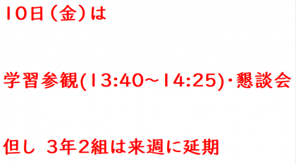 ※ただし、3年2組の学習参観・懇談会は来週17日に延期させて頂きます。