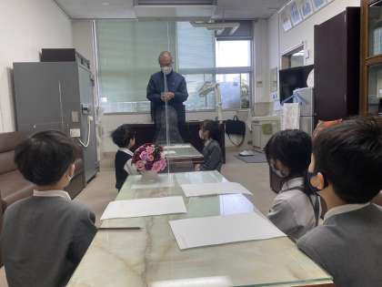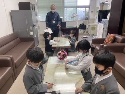 今日も九九名人を目指して、2年生の皆さんが名人認定試験を受けに校長室にやって来ました。限られた時間で、しかも校長室ということで皆さん緊張しているようでした。