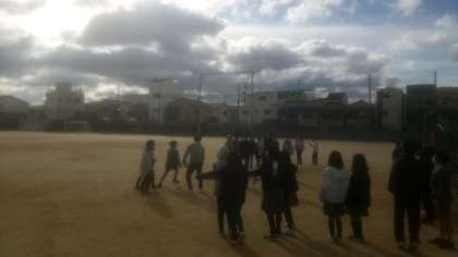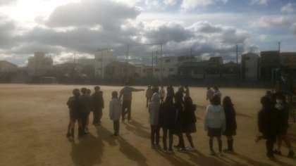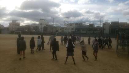 5年1組の皆さんが明日の試合に向けて大繩の練習に励んでいました。