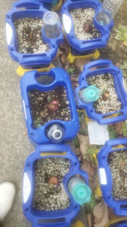 1年生が植えた球根から芽が出ていました。今日もかなり気温が低く寒い1日ですが、春は確実に近づいていますね。