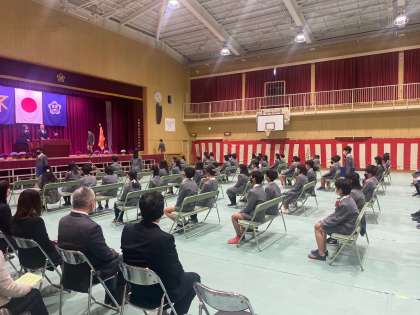 開式しました。国歌、大阪市歌斉唱の後、一人一人に卒業証書が授与されました。