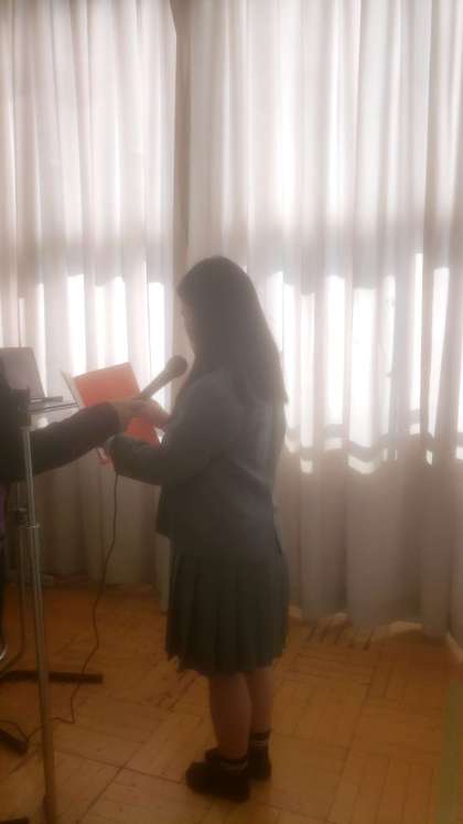 着任式に続いて、1学期始業式です。まずは、新6年生の2人が新年度決意の言葉を述べてくれました。