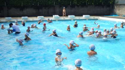 9月4日(金)、久々の晴れです。夏休みをはさんで行われたプール水泳の授業も今日が最終日でした。ひと夏の成果を計測したり、楽しい競争に、あるいは少しだけの自由水泳タイムなど、過ぎゆく夏を思いきり楽しんだ子どもたちでした。