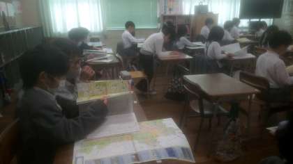 今日からは私たちが暮らす大阪市の学習です。土地の使われ方、交通、地形等どのような特徴があるのかをみんなで調べたり、考えたりしながら学習を進めていきます。まずは、絵地図や地図帳を使って大阪市を概観しました。