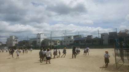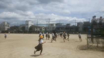 昨日の大雨の影響により、午前中は運動場が使えませんでした。昼休みにようやく赤旗がとれて、子ども達は大喜びで運動場に一直線!