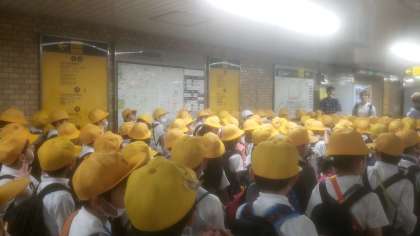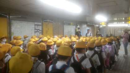 平野駅に着きました。おしゃべりせずに静かに電車を待っています。素晴らしいです。