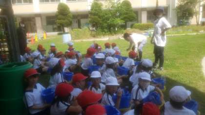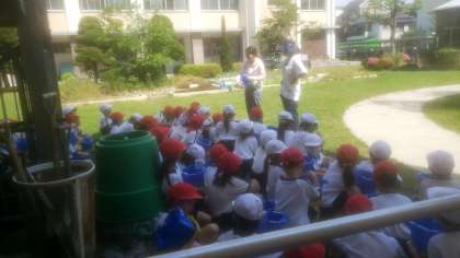 朝顔の種を植える準備です。先生のお話をしっかりと聞いている姿がとても素敵でした。これからしっかりとお世話をして美しい朝顔の花を咲かせてくださいね。