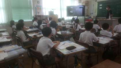 3年生は大阪市の様子を調べる為に、あべのハルカスへ社会科見学に行きます。今日は、見学前にあべのハルカスから何が見えるのか?という問いを設定し、みんなで予想をしました。
