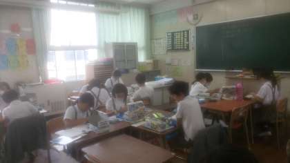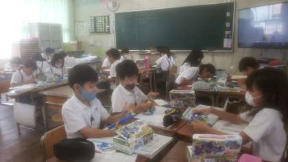 電池の向きを入れ替えたり、羽根の向きを変えたりする等、色んなことを試しながら、発見したことをノートにまとめています。