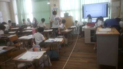 長さの学習です。さしで測ることが難しいものを測るにはどうすればよいか?という問いから今日の学習が始まりました。