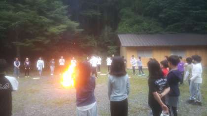 雨が降ってくる前に、少し早いですが、キャンプファイヤーが始まりました。