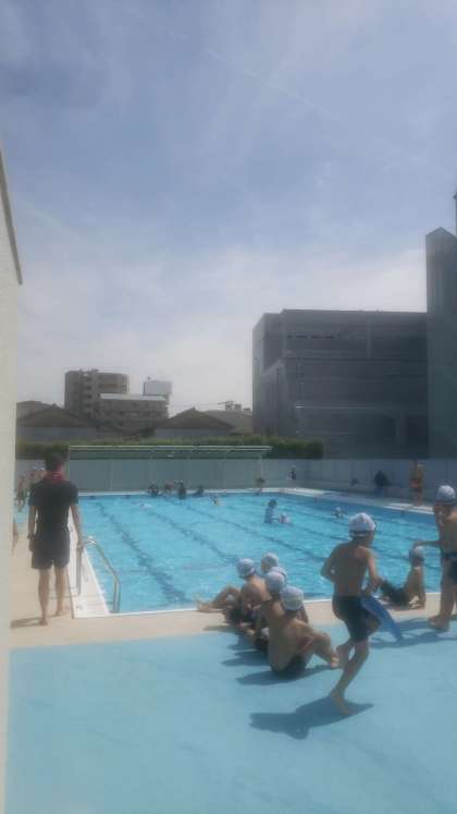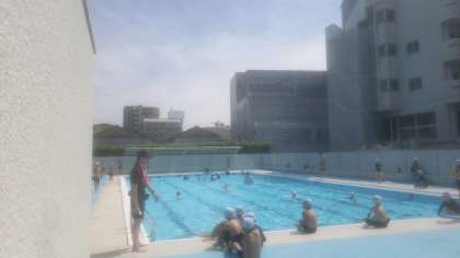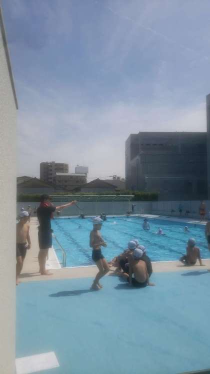 午後の水泳学習は3年生。25メートルのコースを使って、それぞれのペースで泳いでいました。