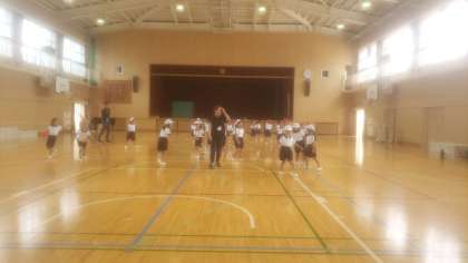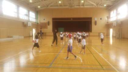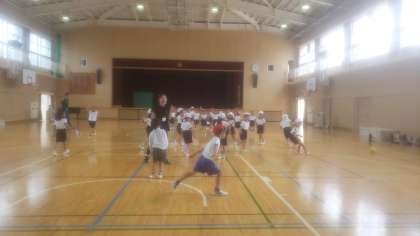 今日は朝から曇り空で、気温も随分と低めです。熱中症に罹患するリスクが低いので、講堂で体育を行いました。