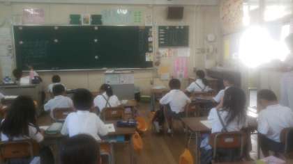 今日のめあては、「3つの数の計算の仕方を考えよう」です。昨日までの学習との違いを明らかにすることで、めあてが明確になりますね。