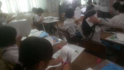 2組ではおしゃれな王冠作りをしていました。まずは、土台となる厚紙を丁寧に切っています。
