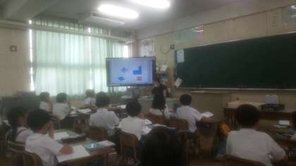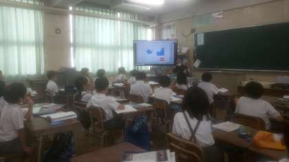 図形の学習です。様々な形の図形を組み合わせることで、色々な形を作り出すことが出来るということに気づいたかな?
