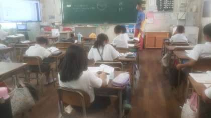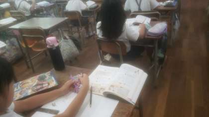 コンパスを使って円を描く練習です。道具を正しく使いこなすことも、算数の大切な力の一つです。