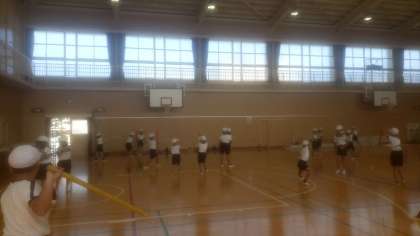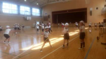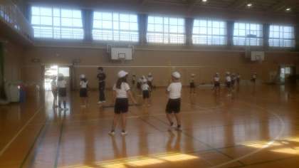 運動会の団体演技の練習中です。グループに分かれて、動きの確認をしていました。