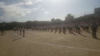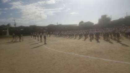今日の児童集会は、全恋児童が久しぶりに一堂に会して、運動場でラジオ体操の練習を行いました。