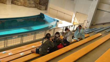 アシカショーで場所取り。開始までには30分以上あるそうですが(笑)