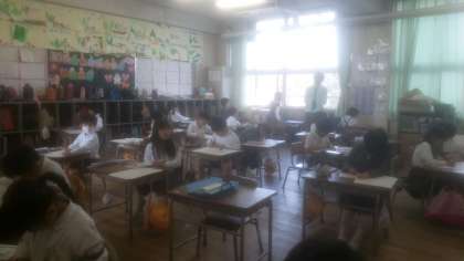 漢字テストの真っ最中です。どれだけ書けたかな?