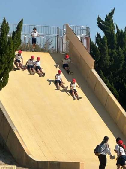 広場での注意事項を聞いて、楽しそうに遊んでいます。