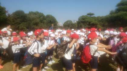 大阪城公園に着きました。今から、オリエンテーリングをします。
