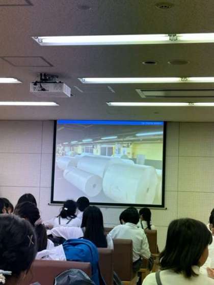 巻き取り用紙という古新聞などで作られた紙の説明を聞いています。